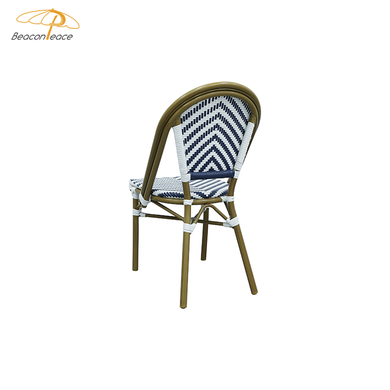 This French woven rattan chair is characterized by elegant French design and exquisite craftsmanship, perfectly blends into the atmosphere of every outdoor tea restaurant or coffee shop. The back and seats use classic rattan craftsmanship, which feels delicate, comfortable and breathable, making every meal or leisure time full of style and relaxation. The bottom is made of an aluminum alloy frame with imitation wood grain spray, which not only retains the natural beauty of the wood, but also has the weather resistance and lightness of the aluminum alloy, resisting the challenges of the outdoor environment. Whether it’s a warm sunshine or a breeze afternoon, it adds a touch of French romance and elegance to your outdoor space, making it ideal for you.
