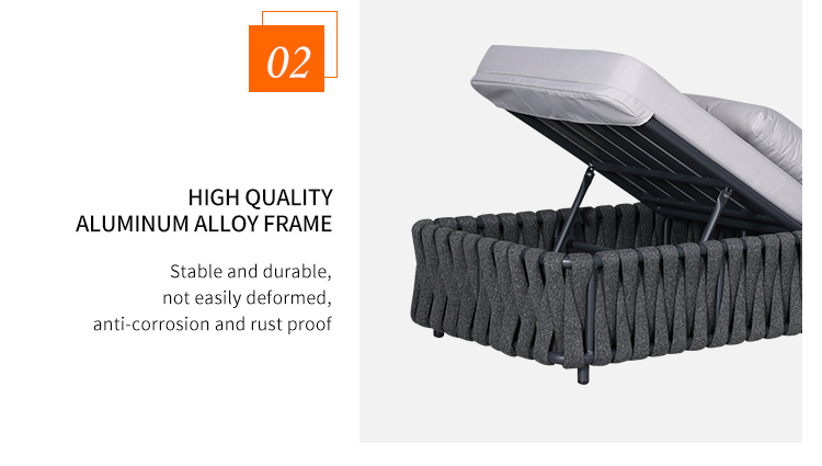 Powder Coated Finished Aluminum Frame+45mm Polyster Rope+T8cm Cushion |