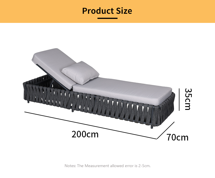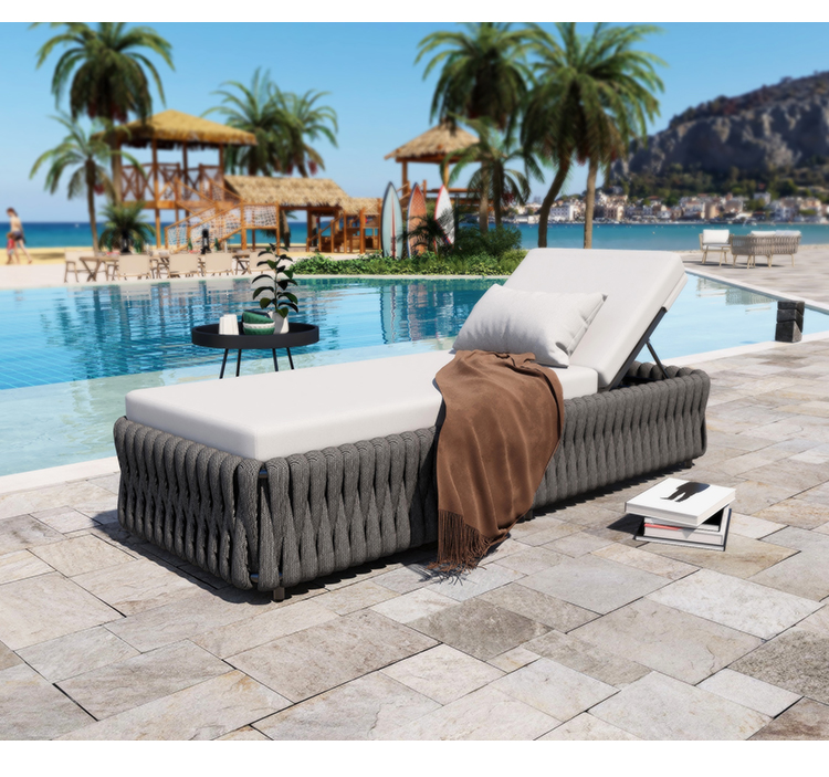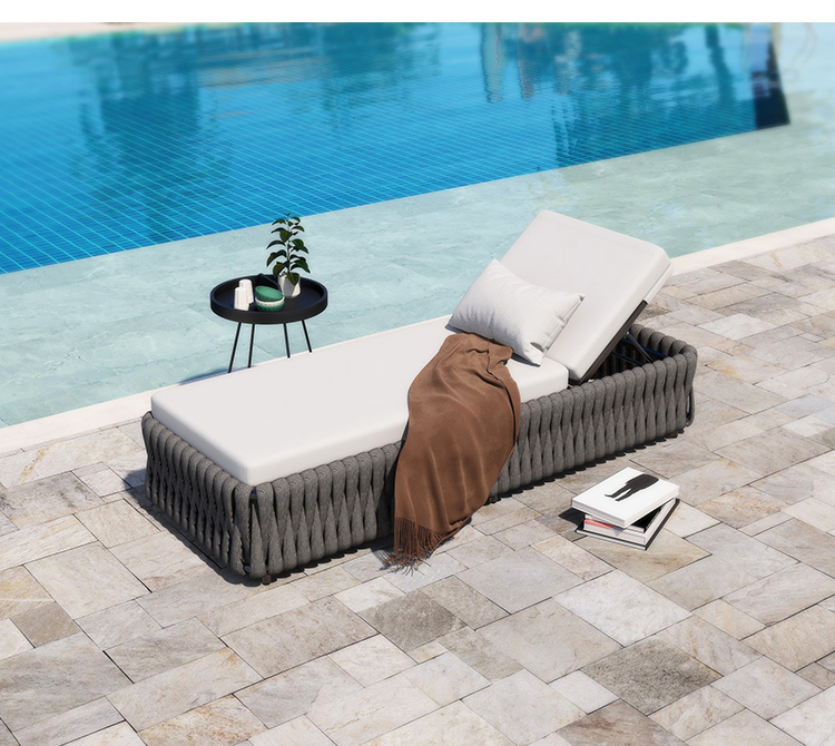 This outdoor aluminum alloy lounge chair perfectly combines comfort and convenience. Made with a sturdy aluminum alloy frame, it is rust-resistant and corrosion-proof, suitable for various outdoor environments. Featuring a soft cushion and a foldable backrest, it offers ultimate comfort. The unique woven rope design adds a touch of natural charm while maintaining a modern, stylish look, making it ideal for gardens, patios, and other outdoor spaces. Its lightweight design allows for easy movement and adjustment, making it the perfect companion for outdoor relaxation.