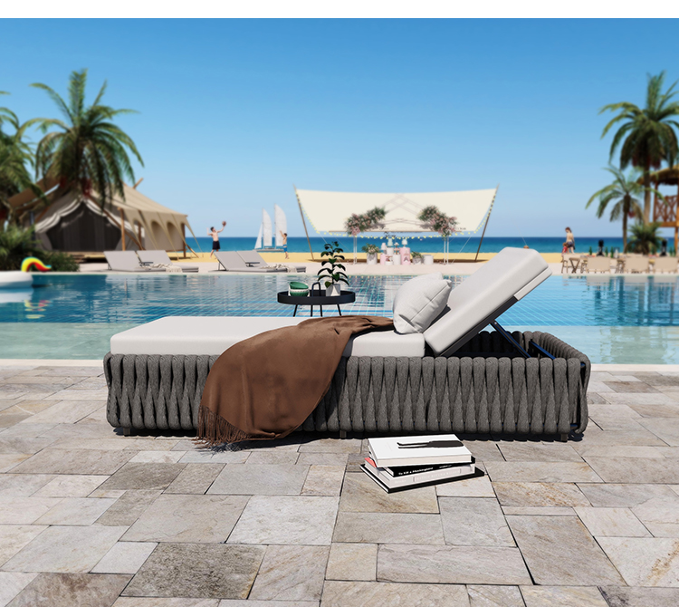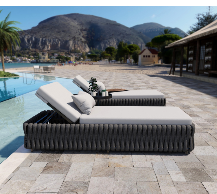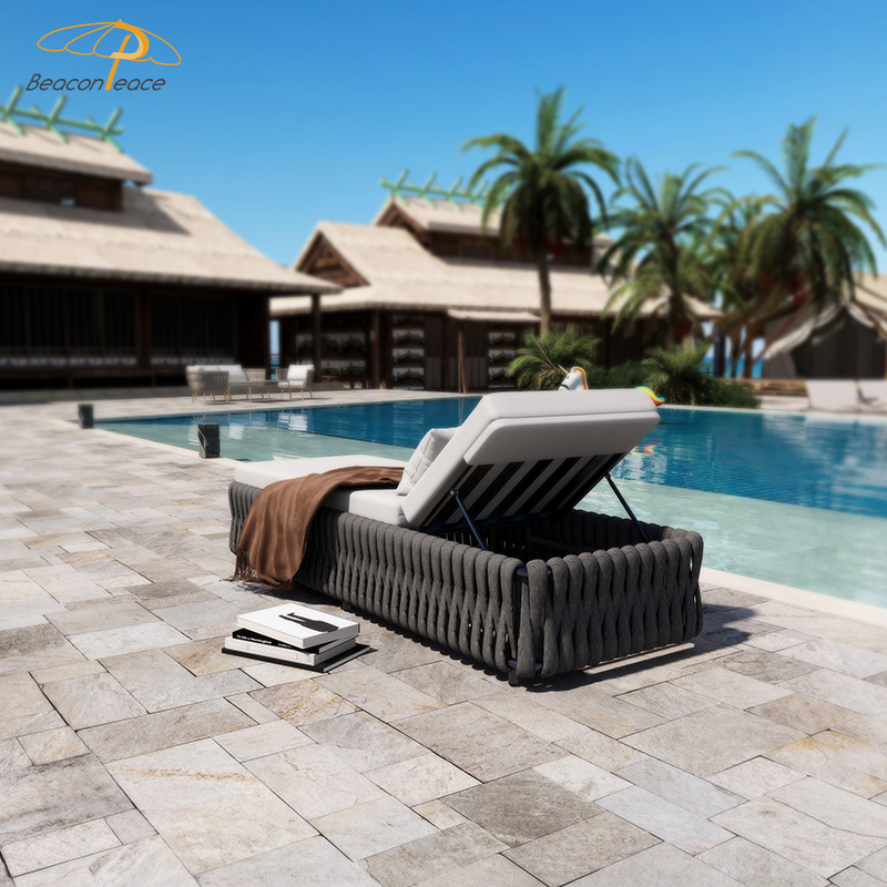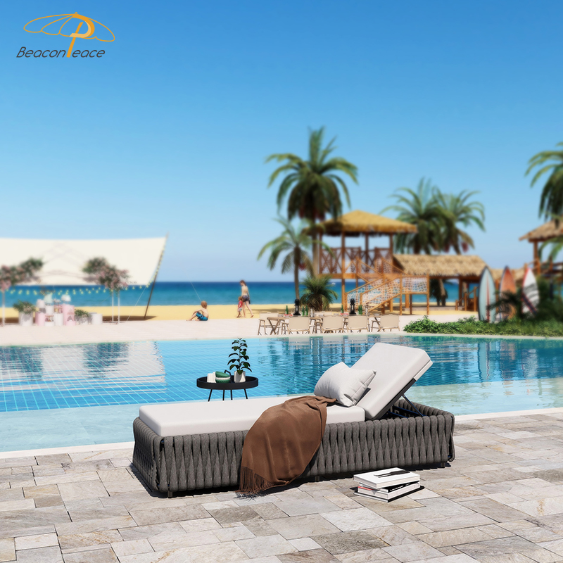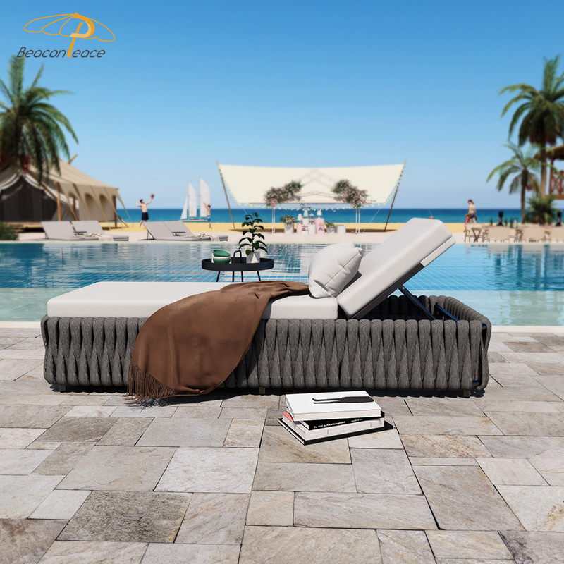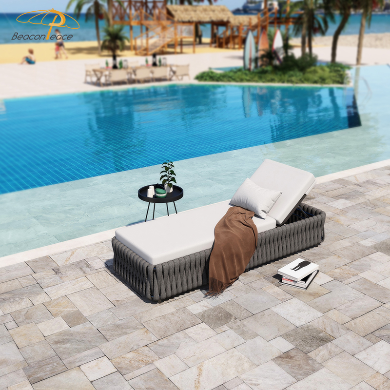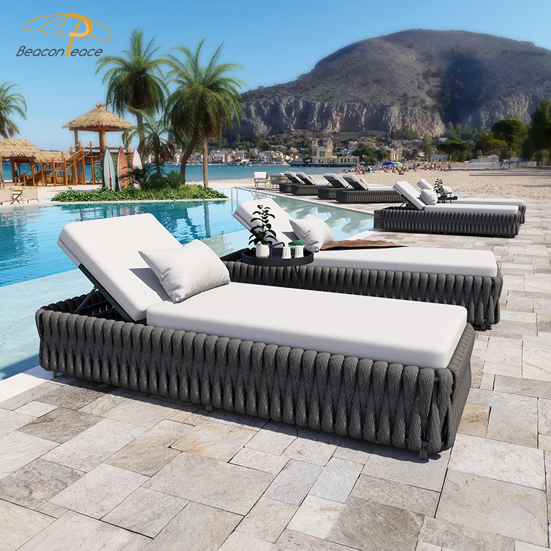 BP5316 Leisure Hotel Garden Sun Loungers Outdoor Exterior Aluminum Rope Chaise Lounge Chair Sunbed With Side Table |