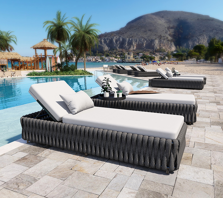 T/T, LC, OA is also available.Leisure Hotel Garden Sun Loungers Outdoor Exterior Aluminum Rope Chaise Lounge Chair Sunbed With Side Table
