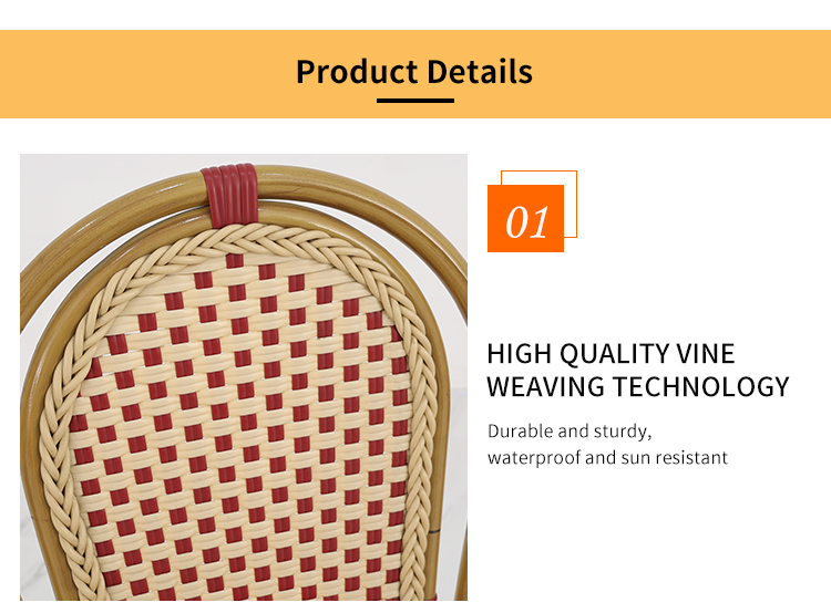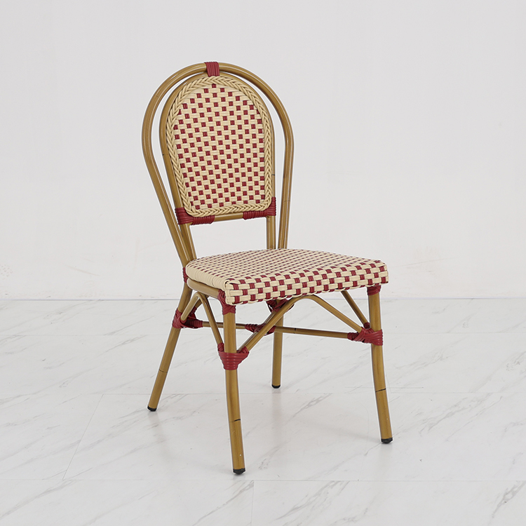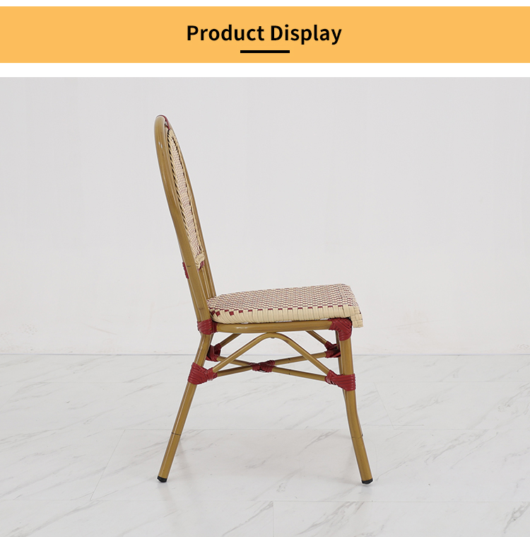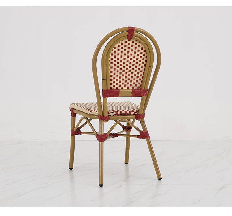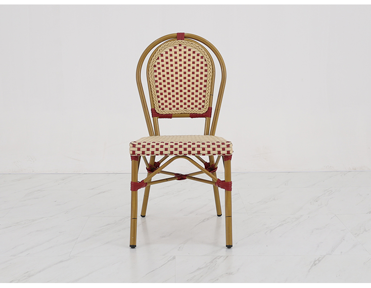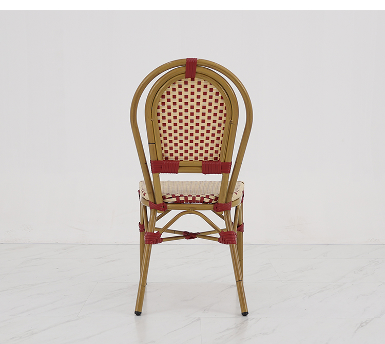 This French-style rattan coffee chair features a high-quality aluminum alloy frame, making it lightweight and sturdy. It's designed for various outdoor settings, including coffee shops, gardens, and patios. Its unique French romantic style and exquisite rattan craftsmanship offer both elegance and comfort. Whether in bright sunshine or light rain, it withstands harsh weather conditions, maintaining its beauty and durability for a long time. It will give your outdoor space a unique charm and enhance your customers' dining experience.