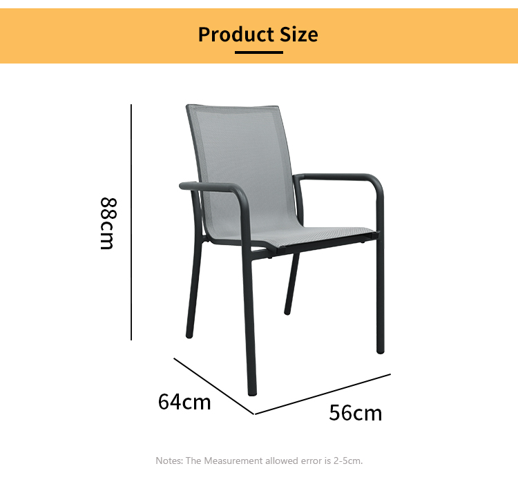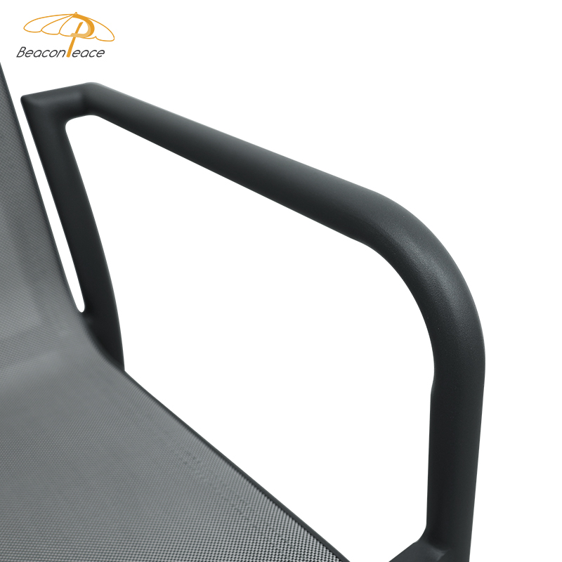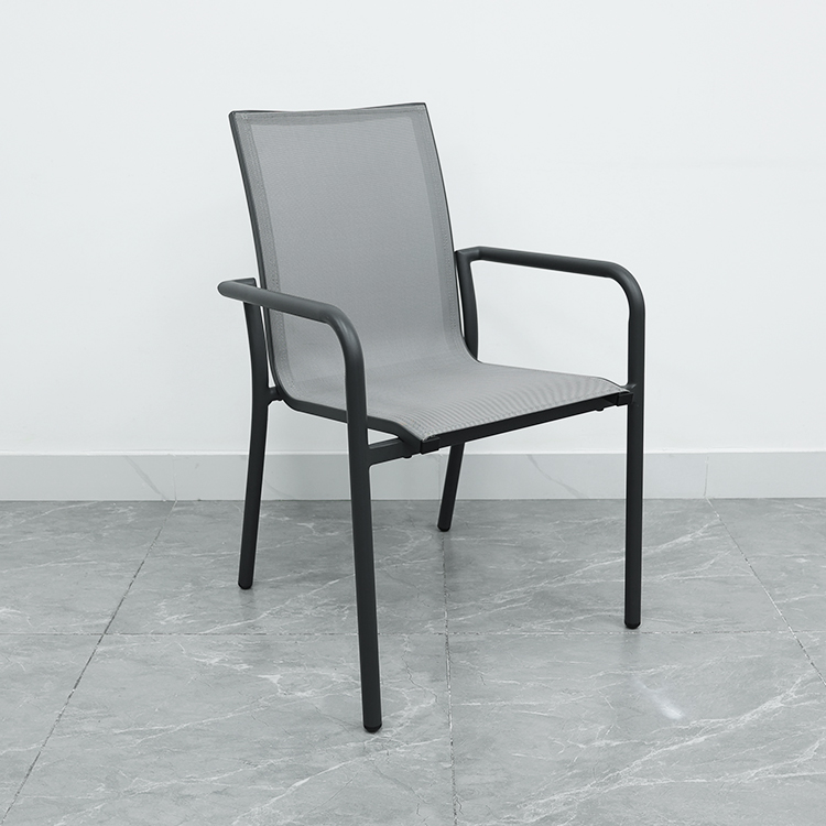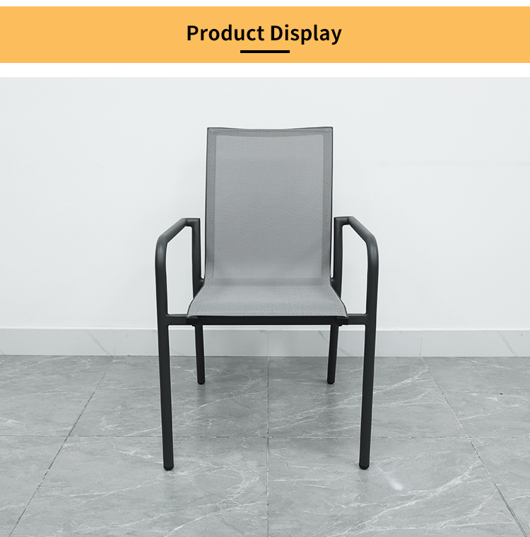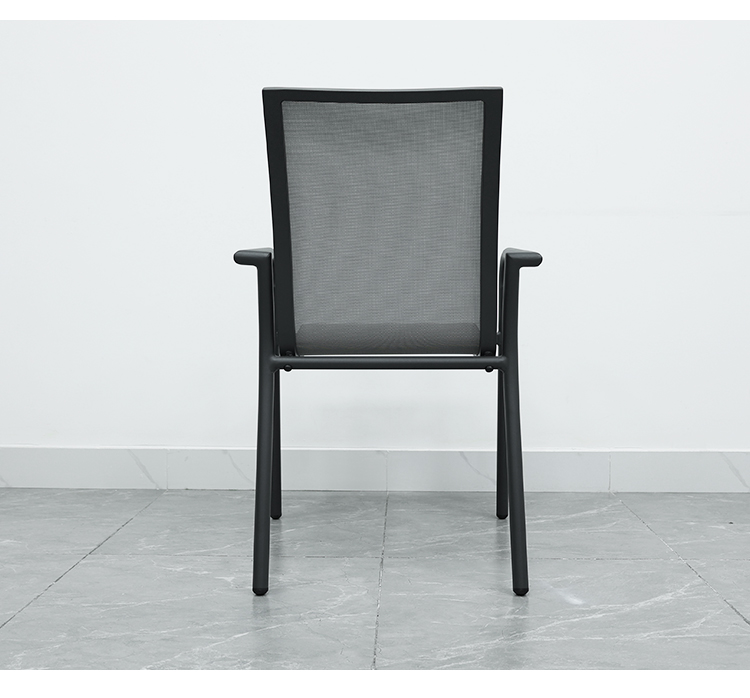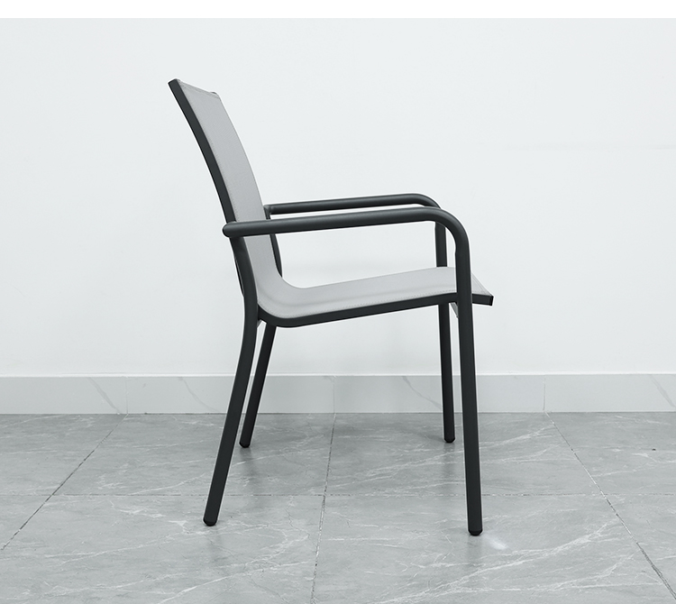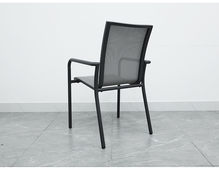 This aluminum alloy chair combines modern design with comfort. Its sturdy aluminum frame and ergonomic armrests provide support and reduce arm strain. The breathable, wear-resistant Trevira mesh seat and backrest ensure long-lasting comfort. Its waterproof and UV-resistant features make it suitable for all weather conditions, and its lightweight design makes it easy to move and store, making it perfect for both outdoor and indoor use.