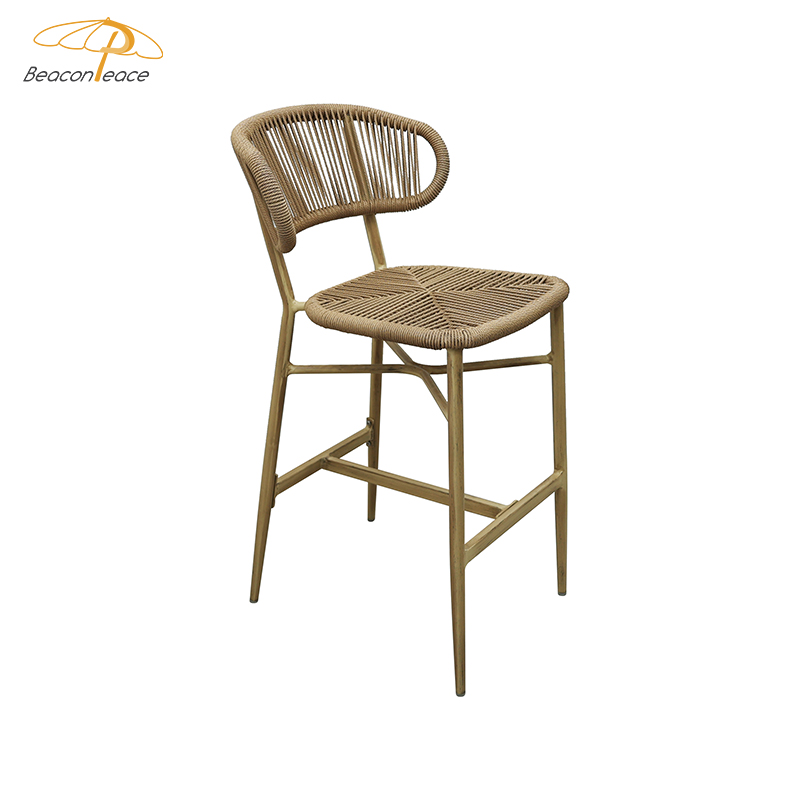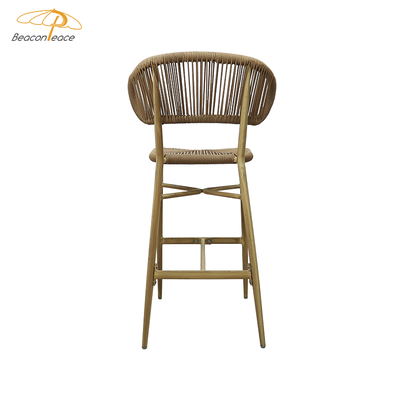 BP8703 Modern Cafe Outdoor Furniture Aluminium Frame Brush Wood Grain High Stool Bistro Dining Bar Chair |