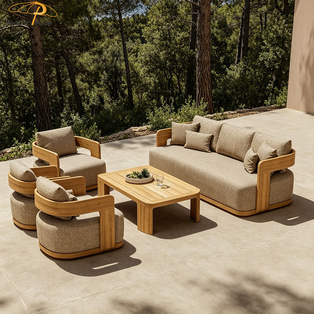 NEW-4101 Modern Luxury Wooden Outdoor Furniture Resort Garden Patio Teak Wood Sofa Set for Courtyard |
