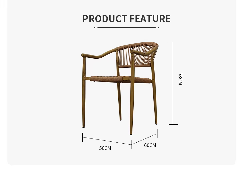 BP4064 Modern Nordic Outdoor Aluminium Furniture Rope Weaving Patio Garden Dining Chair for CourtayrdMOQ :