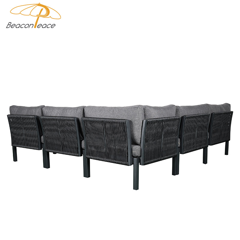 BP4109 Modern Outdoor Garden Furniture Aluminium Frame L Shape Sectional Rattan Patio Sofa Set |