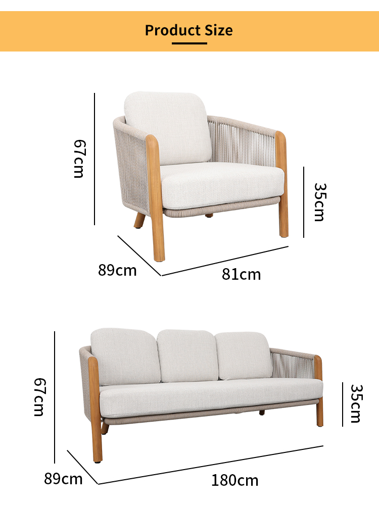 Single Sofa: W81*D89*H67/35cm Triple Sofa:W180*D89*H67/35cm Ottoman:W61*D52*H23cm Coffee table:D 80*34cm+60*28cm |