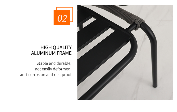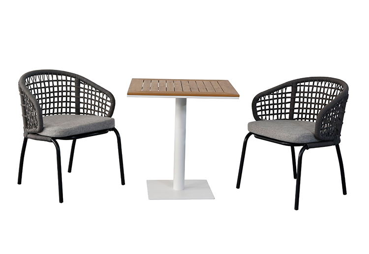 This outdoor dining table and chair set combines durability and aesthetics, making it perfect for any outdoor dining occasion. The combination of a wood-plastic composite tabletop and a spray-painted metal base is both modern and durable, able to withstand the test of various outdoor environments. The aluminum alloy chair frames and the design with woven rope embellishments not only provide comfort but also add a unique artistic touch. Whether for family gatherings or get-togethers with friends, it offers an elegant and comfortable dining experience.